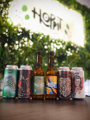 En La Marmita, además de 5 grifos con nuestras cervezas para degustar o llevar a casa, también encontrarás una nevera llena de botellas y latas de otras cerveceras, y también un Escape Room!